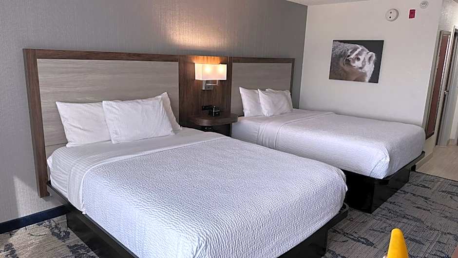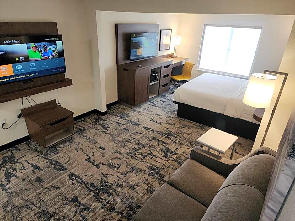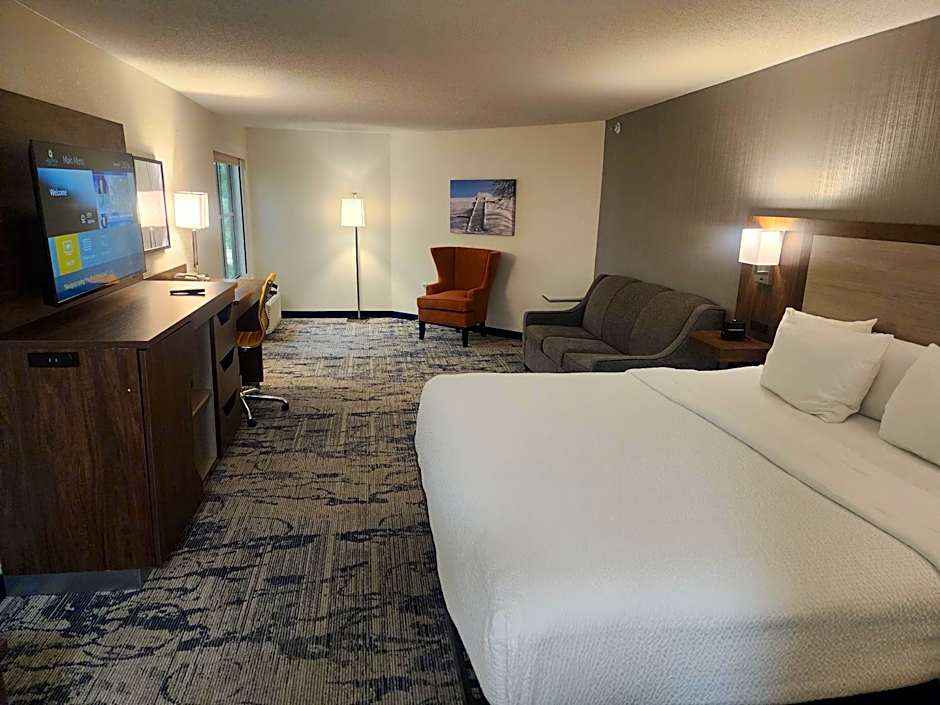 This wheelchair accessible suite features air conditioning, a seating area with a flat-screen TV and a roll-in shower.